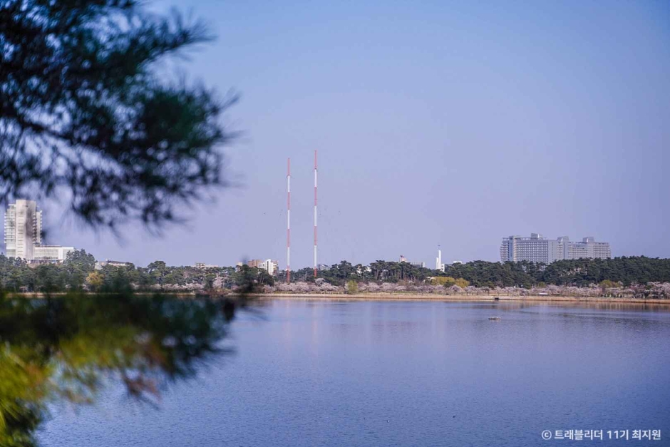 樓閣周圍松林與麻櫟枝葉扶疏,別有一番韻味。1981年鏡浦臺及附近的鏡浦湖被指定為道立公園,旁邊的海岸則是著名的鏡浦海水浴場,適合一併遊覽。而鏡浦臺一帶也是著名的賞櫻勝地,春天時粉色櫻花與樓閣的五色丹青交相輝映,形成古典又浪漫的美景,令人印象深刻。
