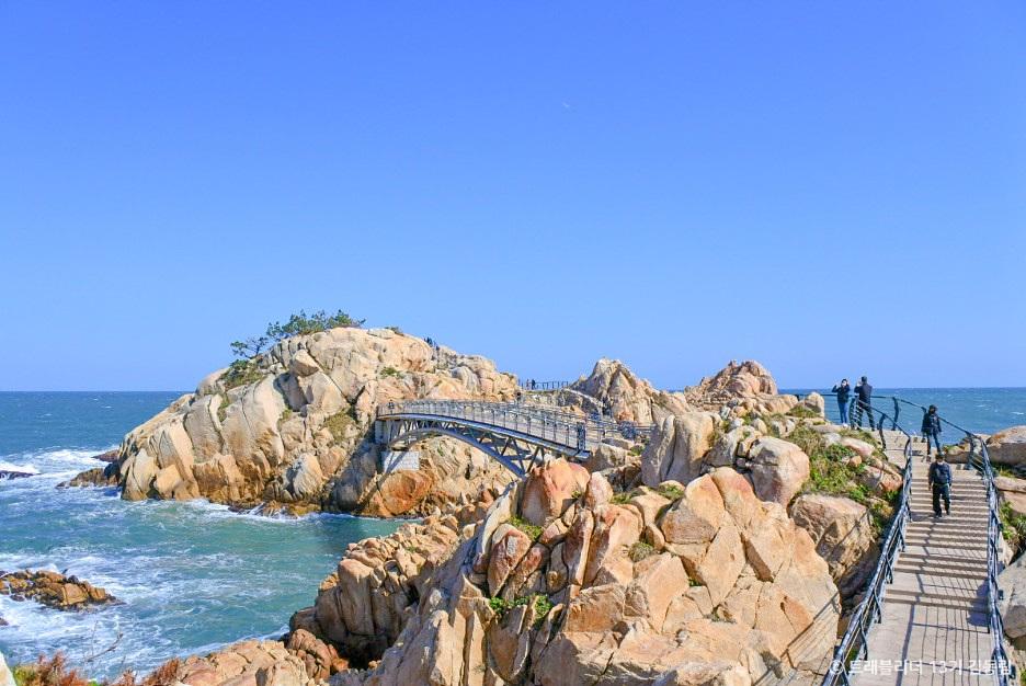 位於韓國東南端,是陸地往東海尖尖突出部分的大王岩公園,與蔚州郡艮絕岬是韓國太陽最早升起的地方,為航行於東海的船隻指引方向的蔚基航路標識所(蔚基燈塔)也相當有名。從公園入口處到燈塔為止,有長約600公尺的松林步道,百年樹齡的大松樹提供了舒適幽靜的樹蔭。離開松林,可看到遼闊的海岸峭壁。聚集於此的眾多巨岩呈現奇詭的姿態,給人彷彿史前時代恐龍直接趴伏於蔚藍海水中形成化石的錯覺。
