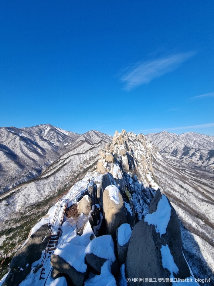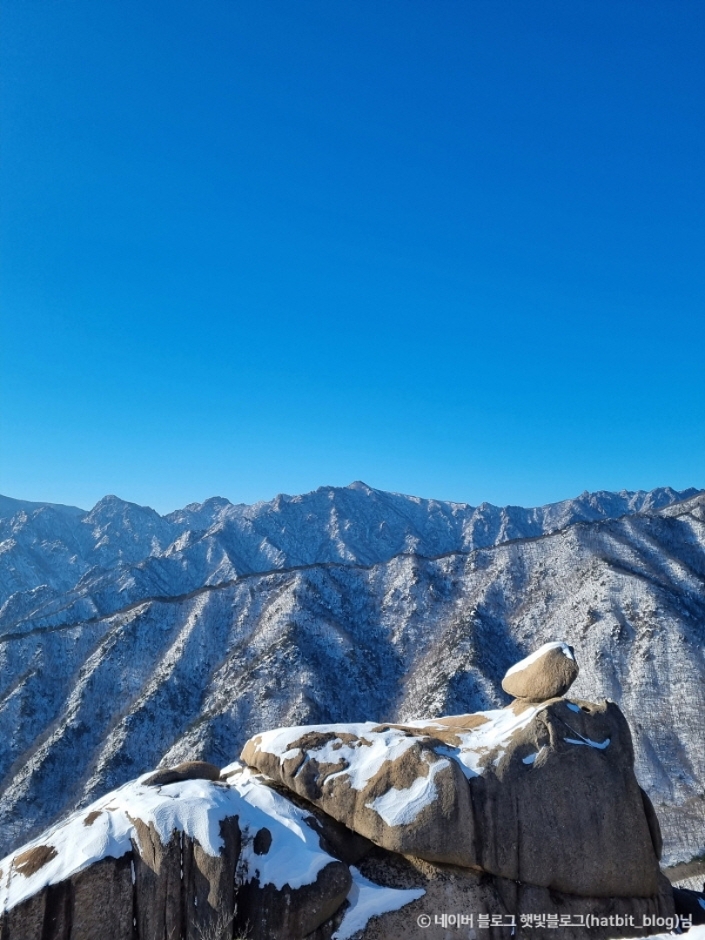 擁有驚人大自然與令人屏息的風景為傲的山,不但是韓國首個被指定的聯合國教科文組織生物圈保護區,還被登錄於IUCN綠色名錄。雪嶽山分為內雪嶽、南雪嶽、外雪嶽,其中外雪嶽是韓國第3高的大青峰(海拔1,708公尺)所在之處。不僅是最受歡迎的登山路線,在山頂還能看到日出和日落的壯麗景色。