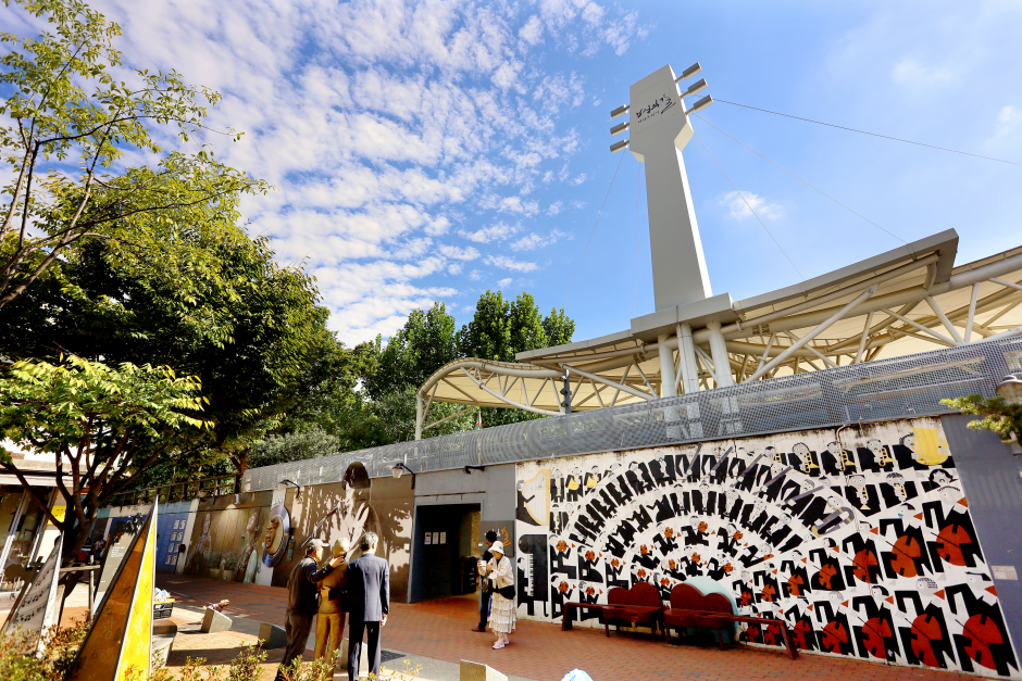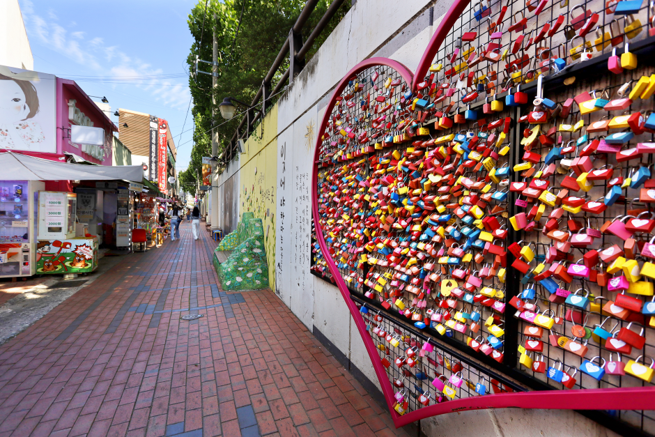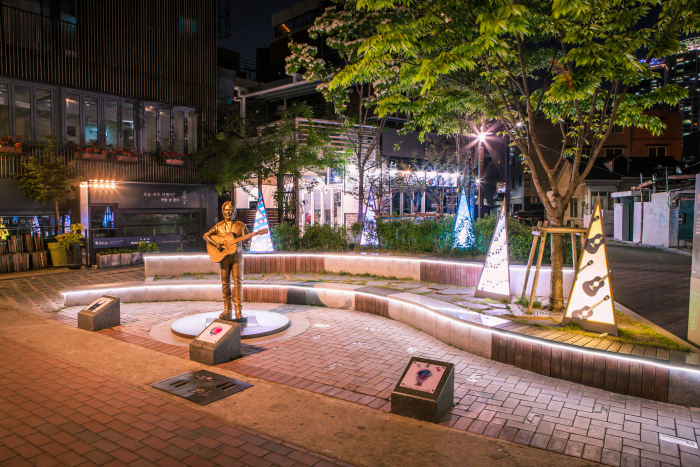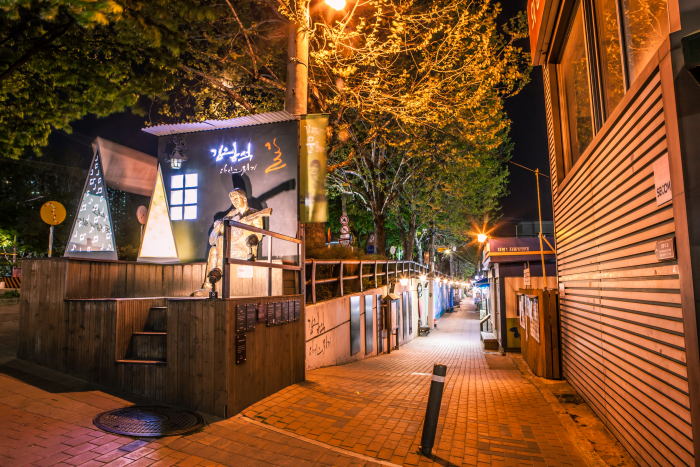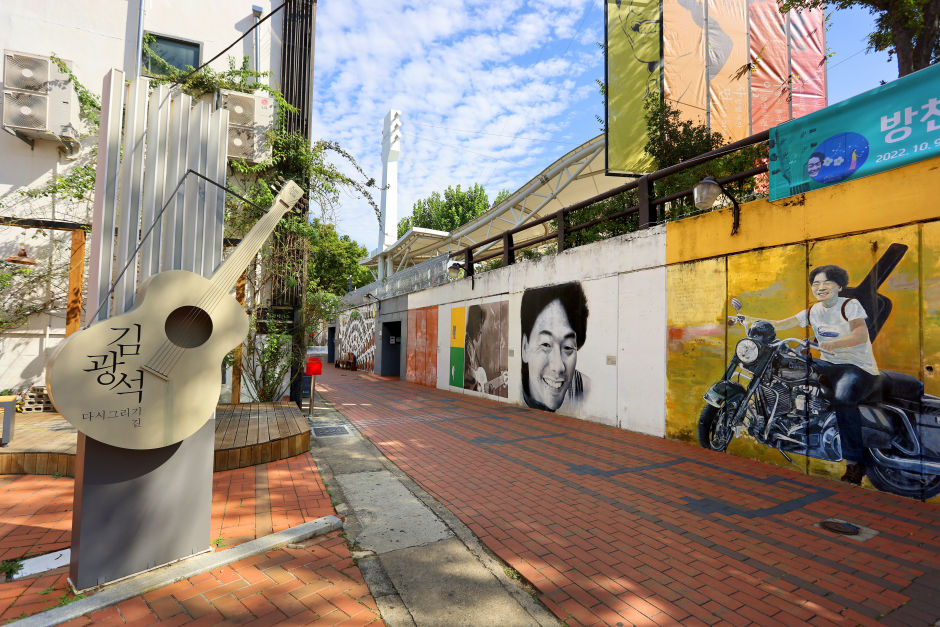 即將離別的羅彬與荷娜約會的金光石街是防川市場旁的巷子,能沿途欣賞以金光石生平與歌曲為主題的各種壁畫。巷子裡有多家熱門打卡咖啡廳與餐廳,吸引無數情侶來此約會。