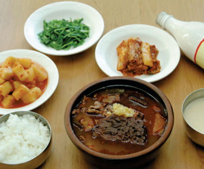 國一牛骨湯飯在1966年被指定為韓國傳統文化保存(傳統名匠)的大邱廣域市鄉土傳統飲食店而聞名,是一間擁有63年悠久歷史的湯飯店。只採用高級牛骨來熬煮燉湯,再加入新鮮牛肉、牛血及各式調味料一起料理,味道濃郁相當符合大邱人民的口味,後來在陸續改良研發菜色的過程中,決定將米飯及湯汁分開上桌提供給客人享用,牛肉湯飯就此開始成為大邱固有的傳統食物。