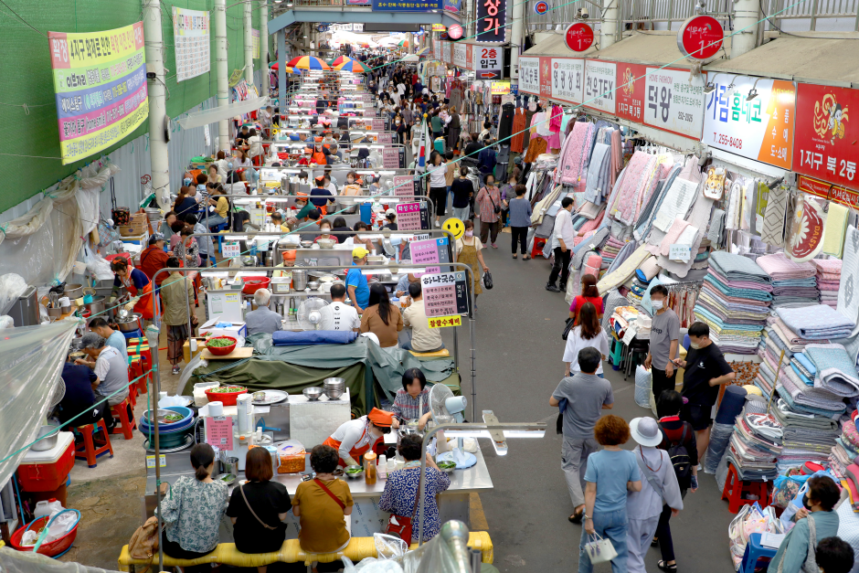 西門市場在1920年代遷移至填埋天皇堂池而成的現址,過去稱為大邱大市場,歷史悠久。若提到朝鮮時代三大市場,指的便是大邱、平壤與江景。因位於大邱城郭西側而得名西門市場,最早位於距城郭300公尺處,即現今的市場北路本田咖啡廳周圍的機車街一帶,每月2日與7日開市,如今還留存著擀麵棍煎餅、雞肉煎餅街名稱。市場內主要販售纖維相關製品,綢緞、布匹、針織品、工藝品、男女服飾、器皿、乾魚貨等應有盡有,規模龐大。除了能體驗溫暖人情味之外,冷暖氣設施、大型停車場一應俱全。