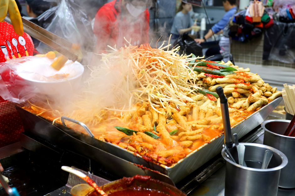 西門夜市的招牌餐點為將大邱的靈魂食品「烤牛皺胃」裝在杯子裡少量販售的杯裝牛皺胃、將白蘿蔔切成薄片熬煮出湯底的白蘿蔔辣炒年糕,以及發想自英國傳統食品炸魚薯條的炸蝦薯條,人氣之高,甚至需要排隊購買。