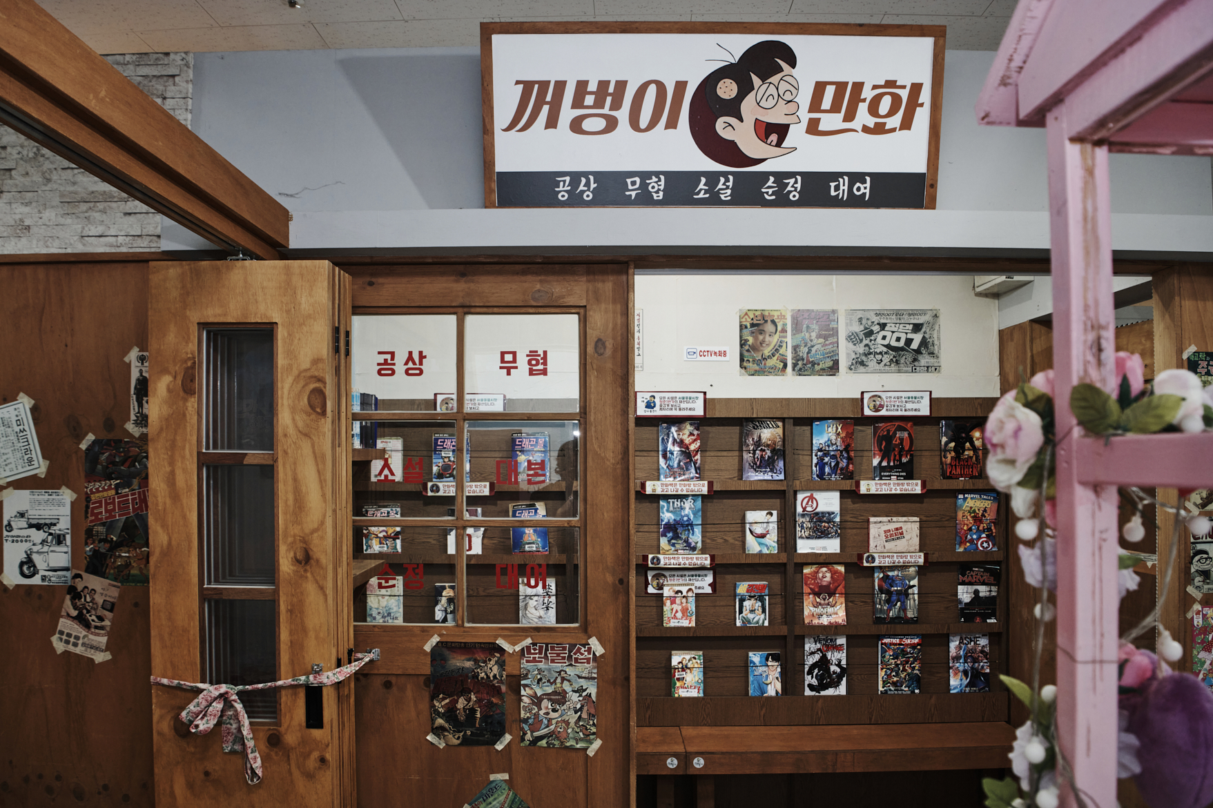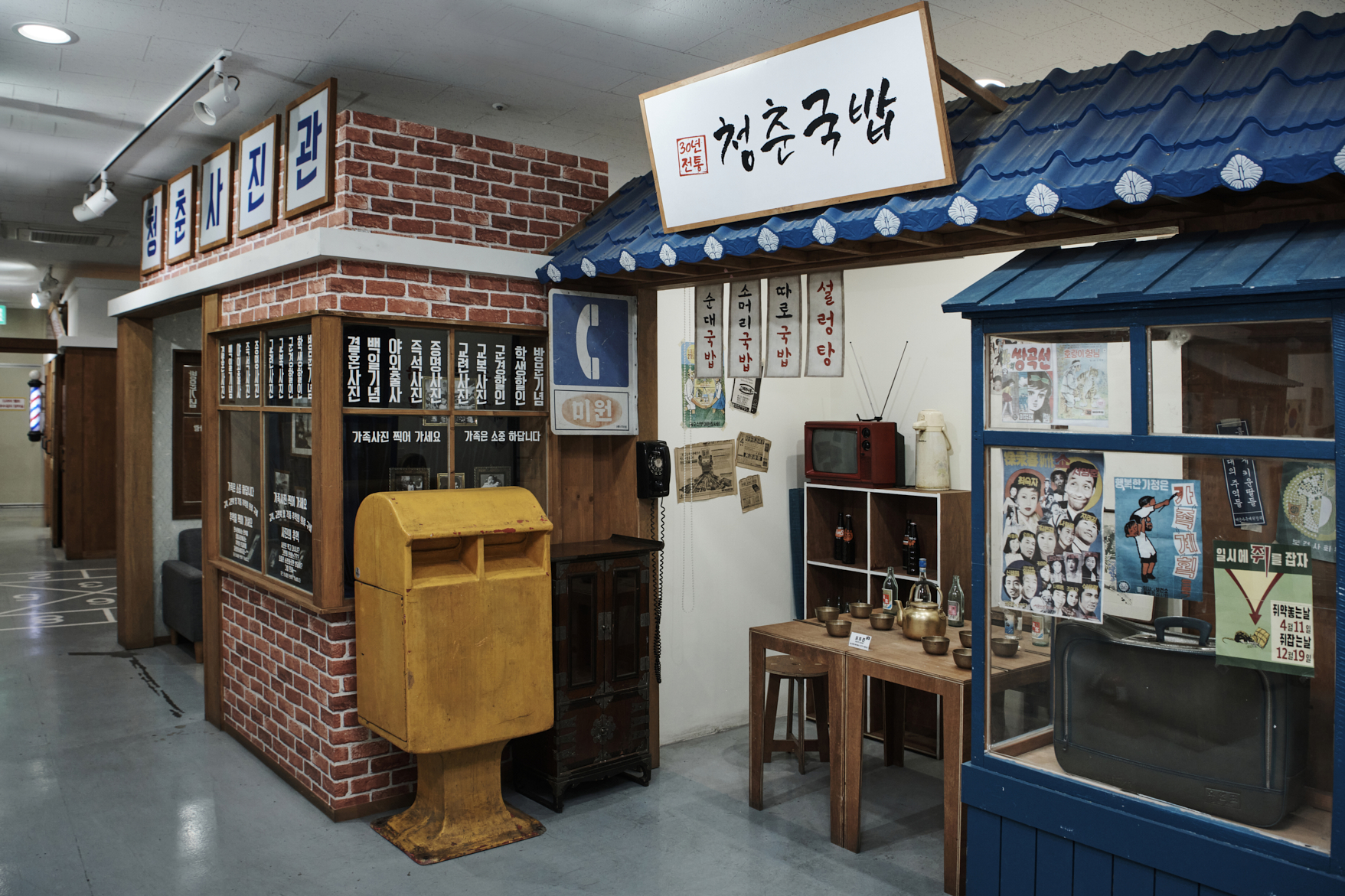 順著階梯走上二樓,迎面而來的是重現60~70年代首爾市區商店街的「青春街」。雖然現在的年輕朋友未曾經歷過那個年代,但眼前光景卻讓人再熟悉不過。褪色的漫畫、黑膠唱片、大如電視的386電腦、文具店前的迷你電玩機、擺著紅色皮椅的茶館等,在在勾起舊時情懷。推薦前往青春照相館換穿只曾在父母相簿裡看過的軍訓裝,拍張吊兒郎當的照片。本身就像是座博物館的這裡,將讓人有種像是坐上了時光機般,一眨眼便墜入了過去。