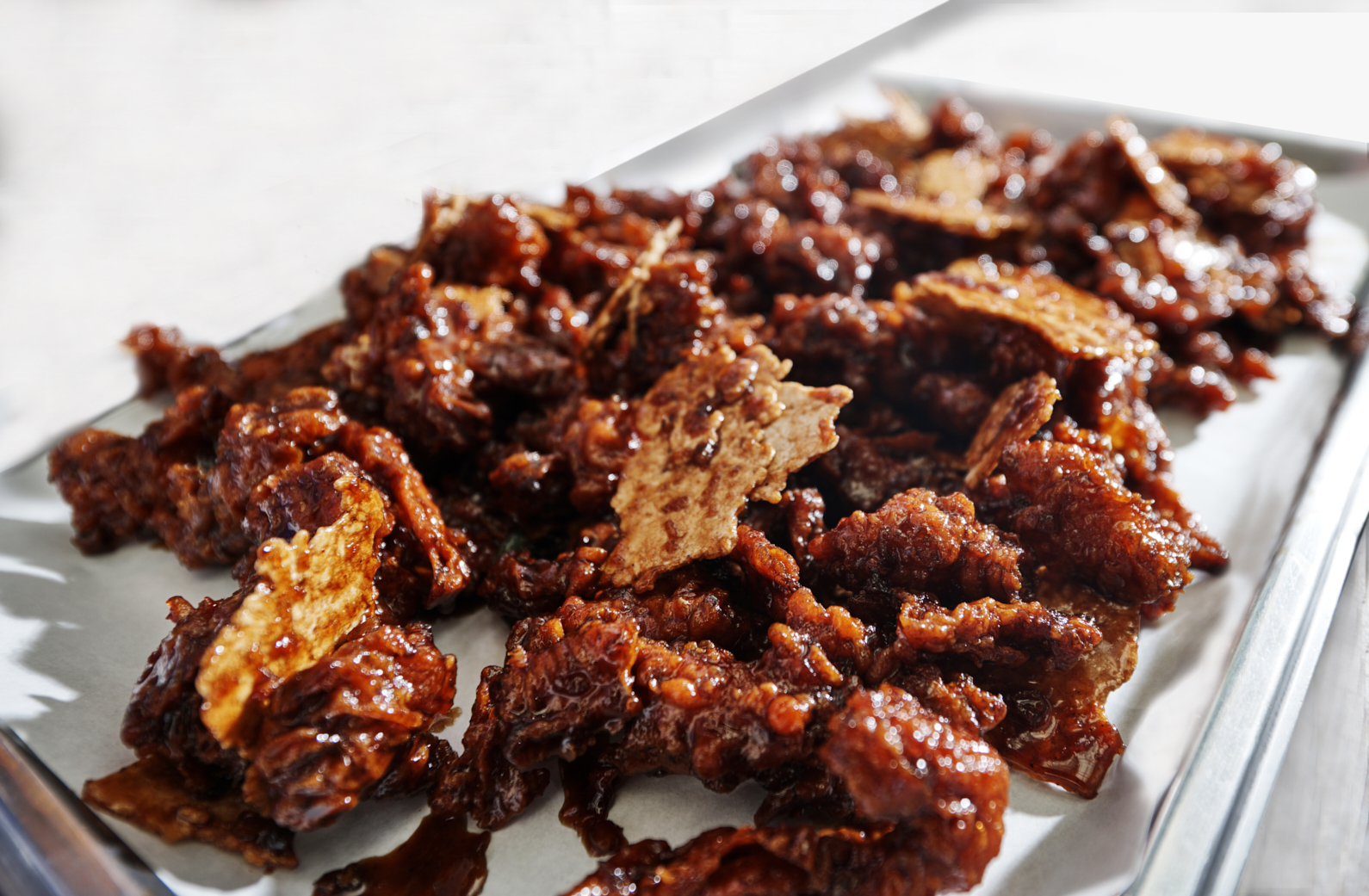 甜辣雞塊、鍋粑與濃郁黑蒜醬組合成極致酥脆且富含蒜香的丹陽九景市場黑蒜鍋粑甜辣雞塊,趁熱吃最是美味。其位於丹麵包坊旁,最明智的方法就是一抵達現場後馬上前往這兩家預訂。