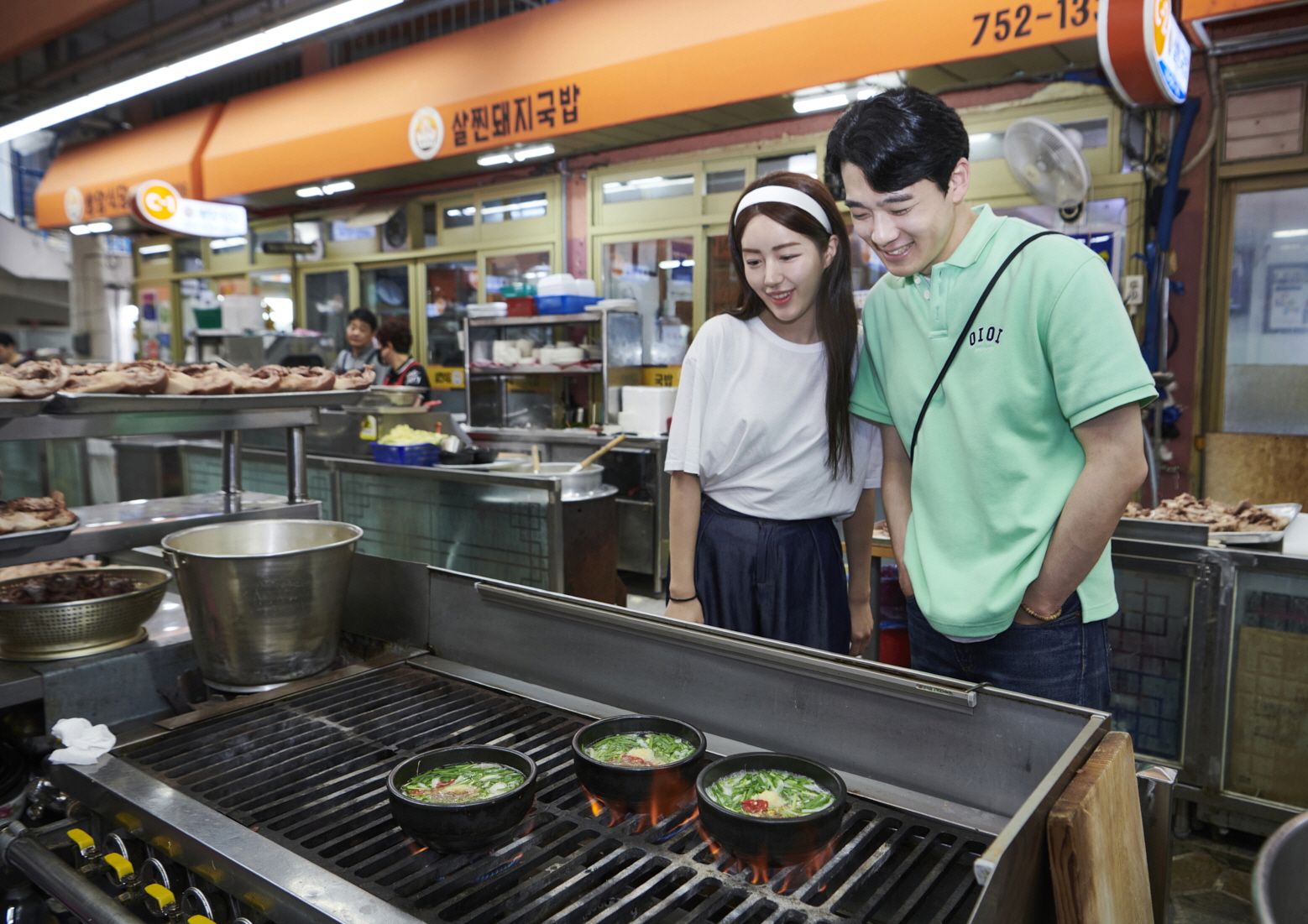聚集的人潮越多,必然出現各種能填飽肚子的美食,最能代表順天上市場的美食莫過於名列「全韓飲食主題街200選」的豬肉湯飯。點兩碗湯飯的話,會先送上一盤豐盛白切肉供嚐鮮。用僅稍微燙過,還帶有清脆口感的韭菜捲起白切肉,蘸點蝦醬後送入口中,接著喝杯綠葉酒,便讓人快活似神仙。僅用豬頭肉熬煮高湯,清爽不油膩的豬肉湯飯就連3年前喝燒酒造成的宿醉也能輕鬆緩解。嗜辣的人不妨果斷地將大塊蘿蔔塊辛奇或南道特有的重口味辛奇放入砂鍋裡。每年9月8日舉辦的順天上市場湯飯節自2012年開辦以來,熱鬧非凡,每年都吸引無數民眾參與。