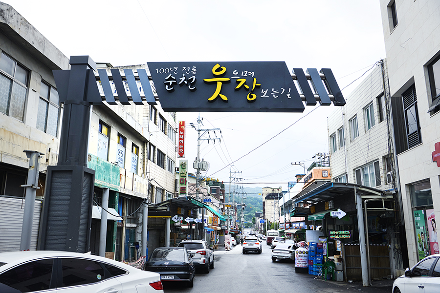 順天擁有肥沃田野、無垠大海、黏稠潮間帶與深邃山谷,得分別前往求禮、筏橋、光陽市場才能見到的當地特產也都會聚集至順天,有「百年上市場」之稱的順天上市場潛力正在於此。雖然每天開市的常設市場就已有充分美食與看點,但每逢5、0日開市的五日市場上,不僅有來自南道各地的食品、雜糧與蔬菜,更有彷彿剛捕撈上岸般新鮮的海產,而如順天上市場入口招牌一樣,邊笑邊逛市場的人也不少數。