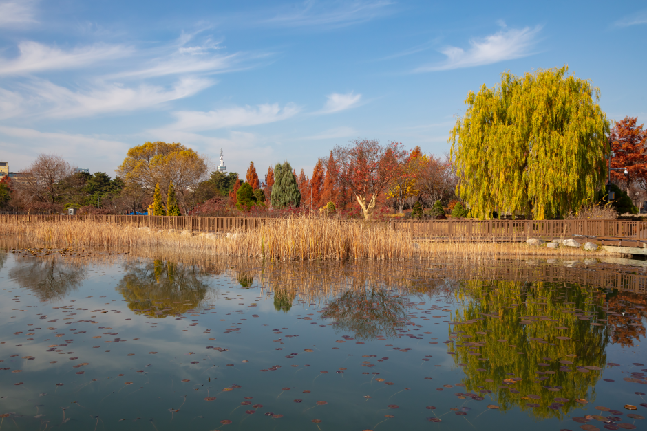大田樹木園位於大田政府辦公大樓與EXPO科學公園的中間。1991年6月7日,屯山大公園被指定為近鄰公園,總面積達569,000㎡,園內有著大田藝術殿堂、平松青少年文化中心、市立美術館、李應魯美術館等藝文設施,是大田名副其實的文化藝術中心。加上一旁的大田樹木園,使這裡成為自然與文化藝術和諧共存之處。