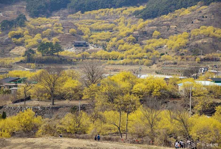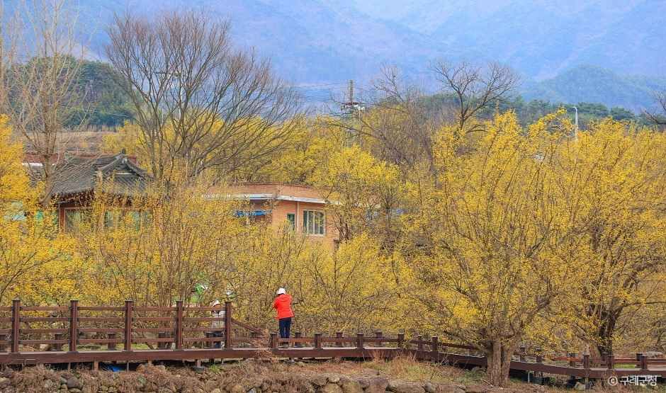 山茱萸村作為山村生態體驗村,春季有山茱萸慶典,夏季有水落瀑布,秋季有山茱萸果實慶典,冬季則有萬福臺雪景,一年四季都適合遊覽,在此放鬆身心。此外,還有山茱萸古道健行與大東輿地圖古道散步等鄰近智異山步道第7區段的區域,以及自上位村至妙峰峙的登山步道、堂谷至姓三峙的登山步道、智異山溫泉等,能享受各式各樣的健康與休憩之旅。