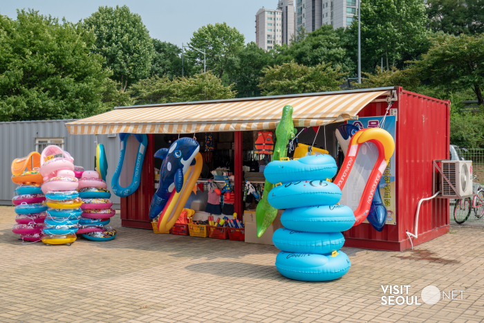 汝矣島漢江公園等6個漢江公園裡設有游泳池,入場費為一般游泳場的一半,價格合理且嚴格控制水質,遊客可以安心使用。此外,場內還設有出售游泳用品和簡單飲料類的販賣部等附屬設施,非常方便。