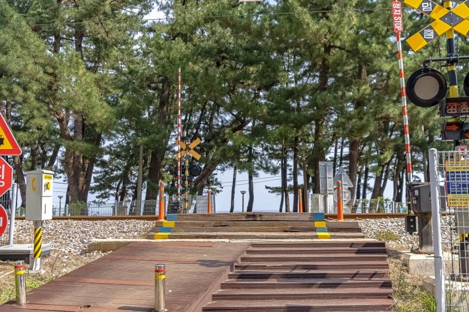 松林茂密、風光秀麗的江陵燈明海邊是RIIZE成員們投票選出第一任BOSS的地方,也是當地人經常前往的秘密景點,可在幽靜的氣氛中欣賞800公尺長的細緻沙灘及翡翠色透明大海。步道完善,沿著海岸路前行約30分鐘,便能見到既是日出名勝,也是以距離大海最近的車站登上金氏世界紀錄的正東津站。