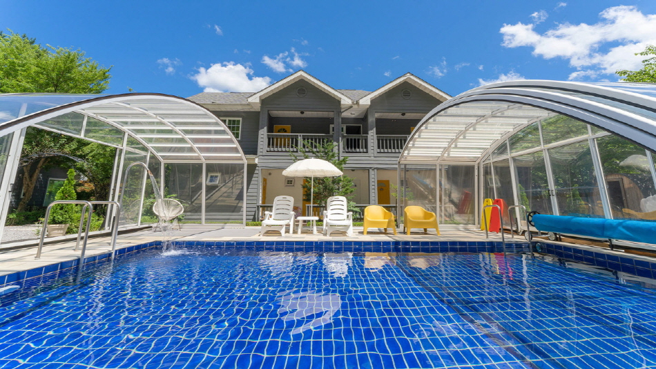 襄陽是韓國的衝浪聖地,也是近來MZ世代最喜愛的城市。不過綠意水彩畫渡假民宿所在位置並非海邊,而是溪谷環繞的山谷,能在清淨的大自然中安靜休息。除了整潔感性客房之外,還有咖啡廳、看火發呆區、三溫暖、游泳池等多種服務設施,廣受顧客好評。