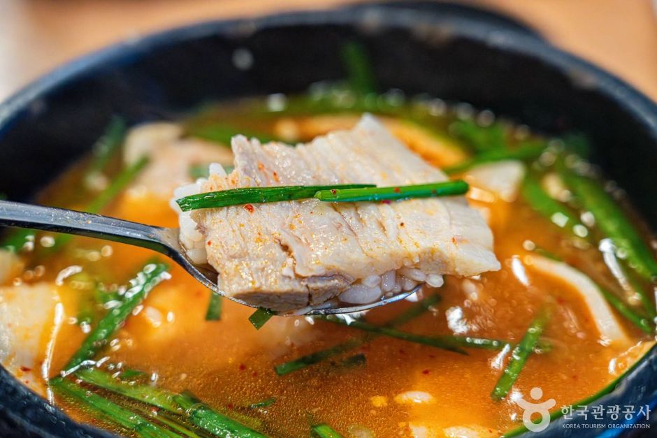 1946年開業至今,為釜山具代表性的湯飯專賣店,名聞遐邇。販售牛骨湯頭的豬肉湯飯,可依個人喜好選擇額外添加豬肉、血腸、內臟等為一大特色。除了凌晨2點30分至4點30分的2小時休息時間之外都有營業 。