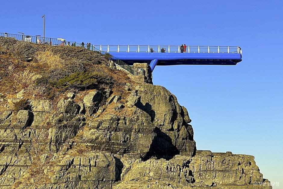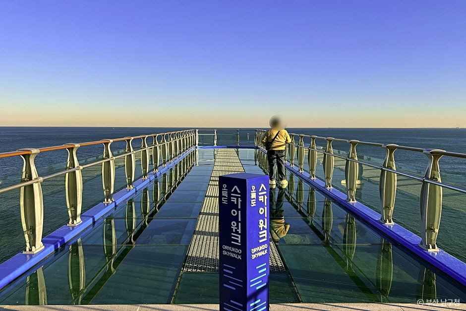 Skywalk位於高達35公尺的懸崖上,用鐵製的支柱加上24片玻璃板,做成呈馬蹄型,全長15公尺的玻璃步道。腳下所踩的玻璃是用4片厚12mm的玻璃板貼上防彈包膜,特別製作成厚55.49公釐的高荷重防彈玻璃,十分安全。透過下方的透明玻璃可以看到海浪拍打著絕壁,給人強烈的刺激感。Skywalk也是知名的攝影勝地,站在此處,可見大海於眼前開展,無時無刻都呈現美麗的姿態,依天氣瞬時變幻各種色彩。當天氣晴朗時,甚至還可以看到日本的對馬島。