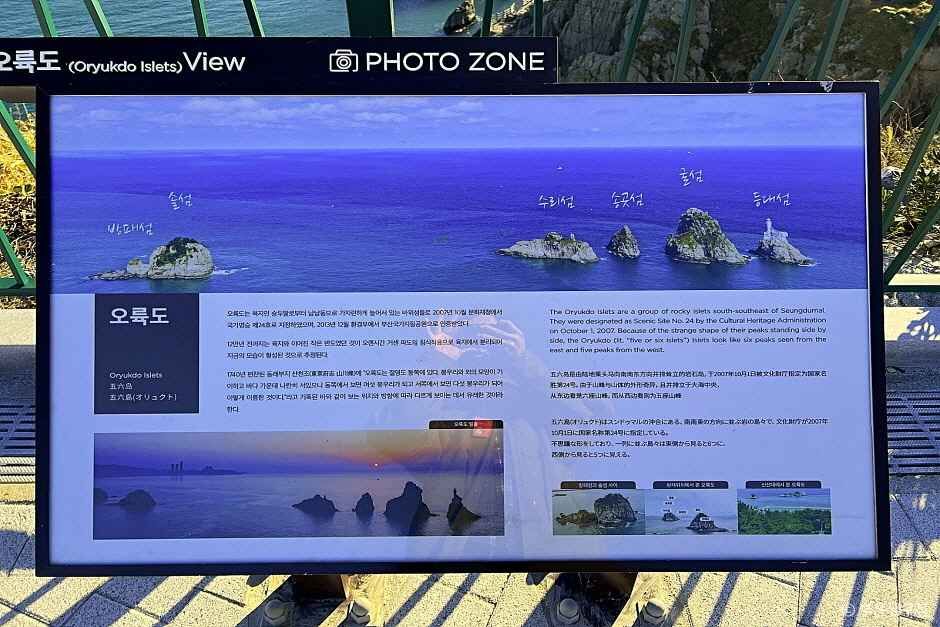 五六島Skywalk一帶過去叫做「seungdumal」,原本因形如馬鞍被稱為「seungduma(漢字音近「乘頭馬」)」,後來最後一個字的發音才轉變為韓文音的「mal」。而當地的海女與居民則把這裡稱為「challokkae(韓文意指瘸腳)」。命名由來據說是此地因海浪侵蝕慢慢產生六個島後,原本突起的部分陷了進去,形成了渡口與入海口的小丘,好像馬一瘸一拐的樣子而得名。